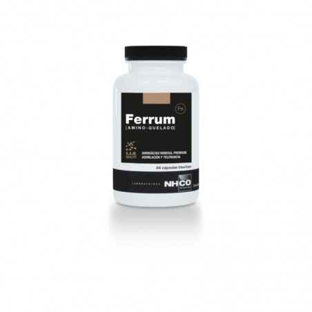 NHCO Ferrum 84 Cápsulas es un complemento alimenticio avanzado formulado con hierro amino-quelado, diseñado para mejorar la asimilación del hierro en el organismo. Este producto está indicado para personas que desean reforzar sus niveles de hierro, prevenir o combatir la fatiga, y apoyar la formación de glóbulos rojos, siendo especialmente útil para adultos, niños, vegetarianos o veganos que puedan requerir un aporte extra de este mineral esencial.