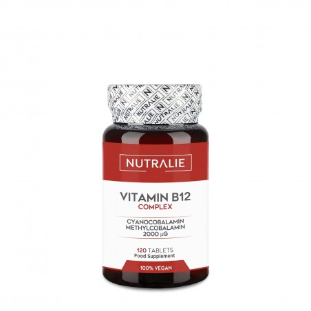 Nutralie Vitamina B12 Complex 120 Comprimidos es un suplemento alimenticio pensado para adultos, especialmente veganos, que buscan reforzar su bienestar diario. Formulado con vitamina B12 de alta concentración (2000 mcg), vitamina B6 y ácido fólico, este complejo ayuda a prevenir deficiencias comunes en dietas restrictivas y contribuye a mantener niveles óptimos de energía y salud inmunitaria.