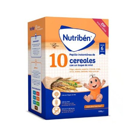 Nutriben 10 Cereales Miel 1 Bolsa 600 g es una papilla instantánea diseñada especialmente para bebés a partir de los 6 meses. Esta fórmula incorpora una amplia mezcla de cereales y un toque de miel, proporcionando una fuente de energía nutritiva y sabrosa para favorecer la introducción de nuevos sabores en la alimentación infantil. Ideal para bebes que inician la alimentación complementaria y buscan una transición segura y saludable.