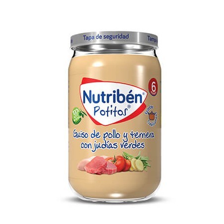 NUTRIBEN POTITO GUISO DE POLLO Y POTITO 235 G es un alimento infantil completo pensado para la alimentación de bebés a partir de 6 meses. Este potito combina pollo, ternera, judías verdes, tomate, patata y arroz con 100% aceite de oliva virgen extra, siguiendo la dieta mediterránea. Perfecto para padres que buscan una opción nutritiva y natural para ofrecer a sus hijos en etapas iniciales de crecimiento.
