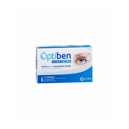 Optiben Ojos Secos 0,25 ml 20 Unidosis es una solución oftálmica especialmente formulada para aliviar la sequedad ocular y las molestias leves como fatiga, sensación de quemazón o irritación. Este producto está indicado para adultos que sufren sequedad en los ojos causada por factores como el uso prolongado de pantallas, aire acondicionado, falta de sueño o el empleo de lentes de contacto. Al principio de cualquier molestia ocular, Optiben Ojos Secos ofrece un alivio rápido, seguro y sin conservantes.