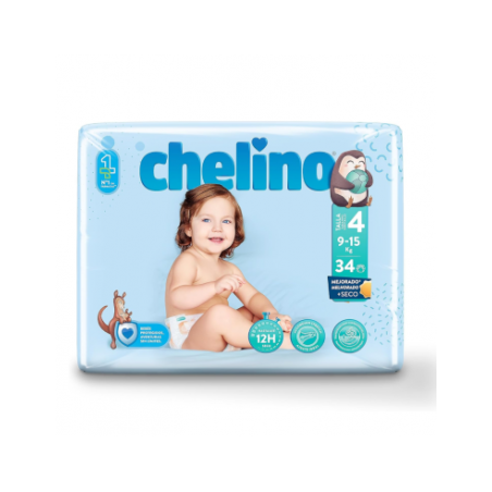 PAÑAL CHELINO T4 9-15 KG 34 es el pañal diseñado específicamente para bebés de 9 a 15 kg que buscan la mayor protección y comodidad en cada movimiento. Su exclusiva tecnología ofrece máxima absorción y suavidad, ideal para cuidar la piel sensible del bebé durante todo el día. Este formato, perfecto para niños pequeños en crecimiento, proporciona seguridad tanto para los padres como para sus hijos.