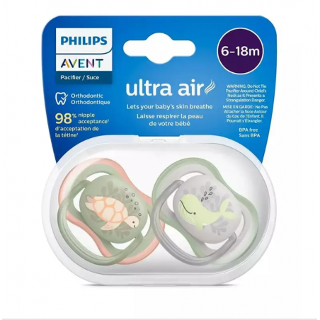 PHILIPS AVENT ULTRA AIR COLLECTION CHUPETE SILICONA 6 - 18 MESES 2 UNIDADES NIÑA SCF080/
