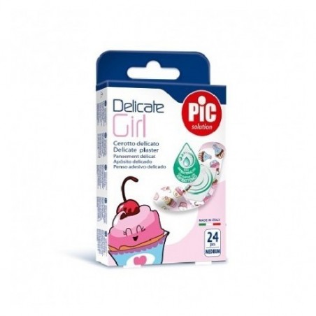 PIC DELICATE KIDS APOSITO ADHESIVO GIRLS 24 APOSITOS 72 MM X 19 MM es un apósito adhesivo infantil especialmente diseñado para proteger las heridas de los más pequeños con máxima suavidad y seguridad. Indicado para pieles sensibles y delicadas, este producto resulta ideal para cubrir cortes, raspaduras y pequeñas lesiones, ayudando a prevenir infecciones y facilitando la curación en niños.
