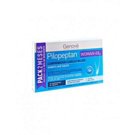 Pilopeptan Woman 5 Alfa R 60 Comprimidos es un complemento nutricional avanzado especialmente formulado para frenar la caída del cabello de origen hormonal en mujeres. Su completo perfil de ingredientes combate la alopecia androgénica y otras formas de caída capilar, ofreciendo una solución eficaz para quienes buscan fortalecer su cabello y favorecer su crecimiento de manera saludable.