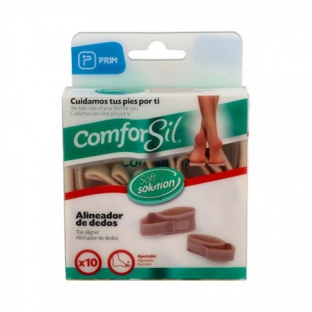 PRIM Alineador de Dedos ComforSil 10 Unidades Talla M es una solución ortopédica diseñada para corregir y alinear los dedos de los pies tras fracturas, superposiciones o deformidades. Su uso está dirigido a personas que buscan aliviar molestias y mejorar la posición de sus dedos sin renunciar a la comodidad diaria, ya que puede utilizarse en cualquier calzado.