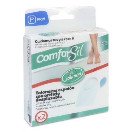 PRIM COMFORSIL TALONERA ESPOLON SILIC T-MED es una talonera ortopédica de silicona diseñada específicamente para aliviar el dolor causado por el espolón calcáneo y molestias semejantes en el talón. Este producto está recomendado para adultos que buscan una solución eficaz a la presión y las molestias al caminar, gracias a su estructura anatómica y capacidad de descarga en el talón. PRIM COMFORSIL TALONERA ESPOLON SILIC T-MED ayuda a redistribuir el peso corporal y mejora el bienestar diario de quienes padecen dolor en los pies.