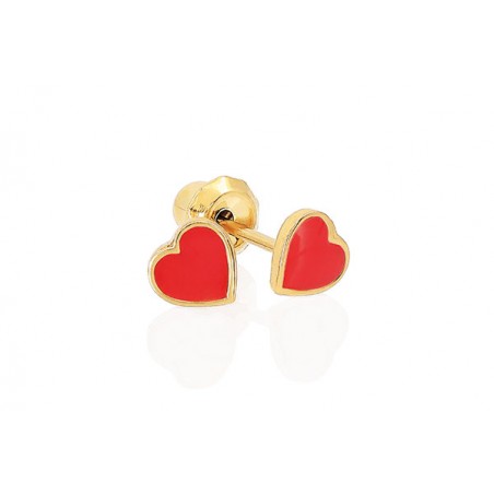 Pendiente infantil en forma de corazón rojo que reduce el riesgo de alergias y favorece una curación segura. Además, cuenta con cierre de seguridad para evitar pérdidas.