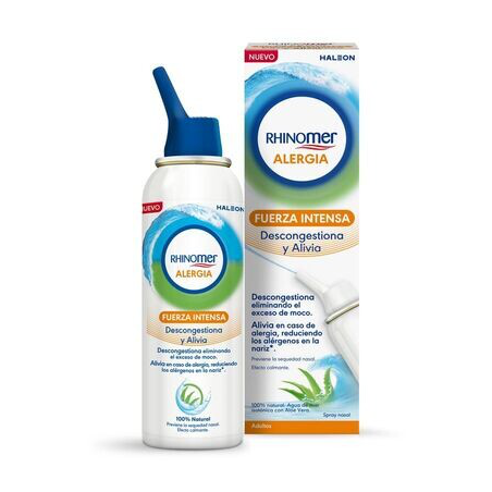 Rhinomer Alergia envase 100 ml es un spray nasal natural especialmente formulado para aliviar los síntomas de la rinitis alérgica, como la congestión nasal, estornudos y exceso de mucosidad. Este producto, recomendado para adultos y niños mayores de 6 años, ayuda a limpiar y descongestionar las fosas nasales, mejorando el bienestar respiratorio durante episodios alérgicos.