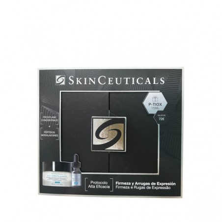 SKINCEUTICALS COFRE FIRMEZA Y ARRUGAS DE EXPRESIÓN P-TIOX + A.G.E. INTERRUPTER ADVANCED es un exclusivo set antiedad indicado para quienes buscan una rutina facial avanzada contra el envejecimiento. Este cofre combina el sérum P-TIOX y la crema A.G.E. Interrupter Advanced, dos fórmulas diseñadas para combatir la flacidez, arrugas profundas y arrugas de expresión, restaurando la firmeza y luminosidad de la piel. Es ideal para mujeres y hombres preocupados por los signos estructurales y dinámicos del envejecimiento, adaptándose incluso a pieles sensibles.
