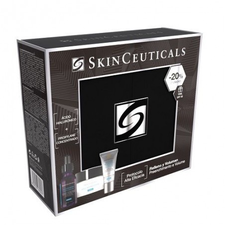 SkinCeuticals Cofre Relleno y Volumen HA Intensifier + A.G.E Advanced Eye es el tratamiento facial antiedad ideal para quienes buscan combatir los signos visibles del envejecimiento en el contorno de ojos y recuperar el volumen y tersura de la piel. Este exclusivo cofre combina dos potentes fórmulas de SkinCeuticals, especializadas en reducir arrugas, bolsas, ojeras y aportar firmeza al rostro, siendo apto para todo tipo de pieles adultas que deseen un rejuvenecimiento integral y visible.