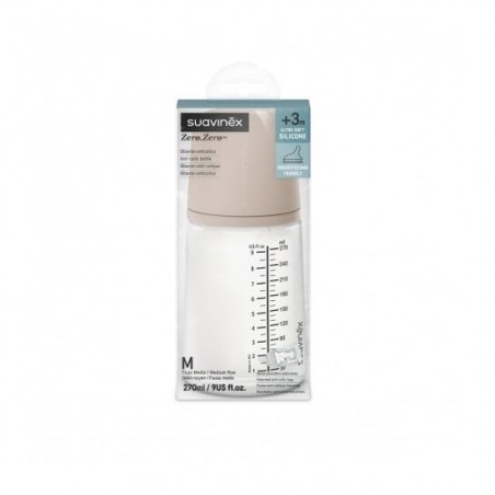 SUAVINEX BIBERON ANTICOLICO TETINA SILICONA FLUJO MEDIO +3 M 270 ML ALMOND