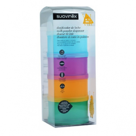 SUAVINEX DOSIFICADOR DE LECHE EN POLVO es un práctico accesorio para preparar y transportar leche en polvo y otros alimentos para bebés, ideal para padres organizados. Facilita la dosificación y almacenaje de las tomas diarias, permitiendo medir la cantidad justa de polvo o snacks de forma segura e higiénica. Especialmente recomendado para familias con bebés o niños pequeños que necesitan preparar tomas fuera de casa.
