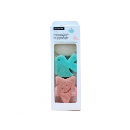 Suavinex Esponja Baño Infantil Konjac Baby Set 3 Unidades es un set diseñado especialmente para la higiene diaria de los bebés, ofreciendo una limpieza delicada ideal para pieles sensibles y atópicas. Este producto, elaborado a partir de fibra natural de Konjac y enriquecido con extractos calmantes de aloe vera y rosa, está indicado para recién nacidos y niños pequeños, proporcionando un cuidado suave y respetuoso para la piel más delicada.