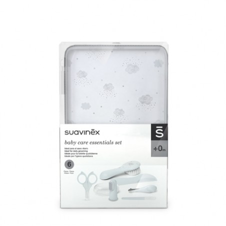 Suavinex Set Manicura Azul es un completo kit de cuidado personal diseñado especialmente para bebés desde el nacimiento. Este set incluye todos los instrumentos esenciales para el mantenimiento seguro y delicado de las uñas, el cabello y la higiene bucodental del más pequeño de la casa. Ideal para padres que desean mantener una rutina de higiene práctica, segura y cómoda, este set es imprescindible para el día a día del cuidado infantil.