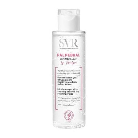 SVR Palpebral Micelar Desmaquillante Ojos 125 ML es un gel micelar especialmente formulado para la limpieza suave de los párpados sensibles, secos e irritados. Indicado para quienes buscan desmaquillar los ojos, incluso con maquillaje resistente al agua, respetando la delicada zona del contorno ocular. Un producto ideal para adultos y usuarios de lentes de contacto que desean una higiene efectiva y respetuosa.