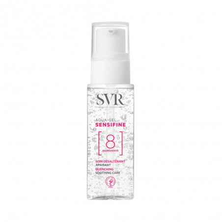 SVR SENSIFINE AQUA-GEL 40 ML es un gel facial ultraligero diseñado especialmente para la hidratación y calma de pieles sensibles, frágiles o reactivas. Con solo 8 ingredientes de alta tolerancia y un 97% de origen natural, este tratamiento diario logra una sensación inmediata de frescor y alivio. Ideal para adultos con piel mixta o sensible que buscan una hidratación intensa sin sobrecargar la piel.