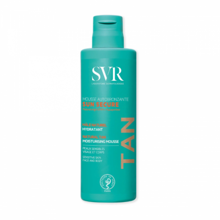SVR SUN SECURE MOUSSE AUTOBRONZANTE 150 ML es una mousse autobronceadora diseñada para conseguir un bronceado natural, bonito y gradual sin la necesidad de exponerse al sol. Enriquecida con DHA de origen natural, esta espuma ligera y fácil de aplicar está indicada para adolescentes y adultos, incluso aquellos con piel sensible o intolerante al sol, y puede utilizarse tanto en el rostro como en el cuerpo.