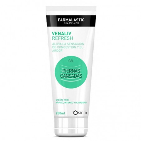 VENALIV REFRESH GEL PIERNAS CANSADAS 250 ML es un gel refrescante especialmente diseñado para aliviar de forma rápida y eficaz la sensación de pesadez, congestión y ardor en las piernas cansadas. Su innovadora fórmula proporciona un intenso efecto frío y mejora la microcirculación periférica, siendo ideal para personas que sufren molestias por permanecer mucho tiempo de pie o sentadas.