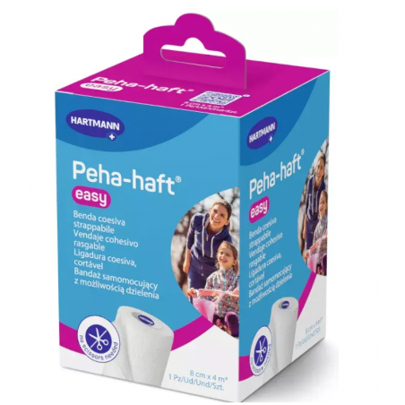 Venda Elástica Cohesiva Peha-Haft Easy White 4 m x 6 cm es un vendaje elástico autoadhesivo, diseñado para fijar apósitos o proteger heridas de forma cómoda y segura. Este producto, especialmente indicado para personas con piel sensible o tendencia a alergias, se adapta a cualquier zona del cuerpo y destaca por no pegarse a la piel, el pelo o la ropa.