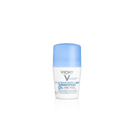 VICHY DESODORANTE MINERAL 48H BOLA 50 ML es un desodorante roll-on formulado especialmente para pieles sensibles o reactivas a las sales de aluminio. Este producto está diseñado para proporcionar protección eficaz durante 48 horas frente al mal olor y la sudoración intensa, respetando la barrera cutánea y minimizando el riesgo de irritación, incluso tras la depilación o el afeitado. Indicado para usuarios que buscan un desodorante mineral seguro, hipoalergénico y sin alcohol.
