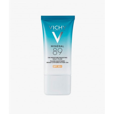 VICHY MINERAL 89 FLUIDO DIARIO BOOST DE HIDRATACION 72H SPF50+ es un fluido hidratante facial avanzado, diseñado para proporcionar hasta 72 horas de hidratación intensa, fortificar la barrera cutánea y proteger la piel frente a los daños solares gracias a su SPF50+. Especialmente formulado para quienes buscan mantener su piel suave, luminosa y protegida a diario, incluso en entornos urbanos y bajo exposición solar.