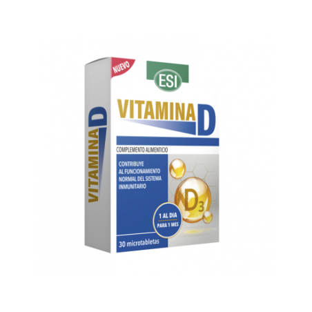 VITAMINA D ESI 30 MICROTABLETAS es un complemento alimenticio en formato microtableta que proporciona 2000 UI de vitamina D3 (colecalciferol) por dosis diaria. Está indicado para adultos que necesiten reforzar la ingesta de vitamina D, especialmente en casos de poca exposición solar, dietas bajas en grasa animal o envejecimiento, ayudando a mantener los niveles adecuados de esta vitamina esencial para el organismo.