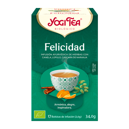 YOGI TEA FELICIDAD es una infusión ayurvédica ecológica especialmente formulada para promover el bienestar emocional y el equilibrio interior. Elaborada con ingredientes orgánicos, esta infusión es ideal para quienes buscan una experiencia de sabor única que inspire alegría y serenidad. Perfecta para personas que desean disfrutar de una bebida vegana, natural y llena de armonía en cualquier momento del día.