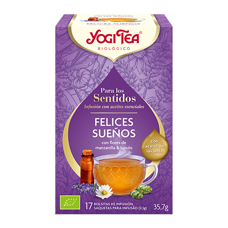 Regálate noches de descanso y equilibrio: descubre Yogi Tea Para Los Sentidos Felices Sueños y disfruta de una experiencia natural y reconfortante cada noche. ¡Hazte con tu infusión relajante y despierta renovado cada mañana!