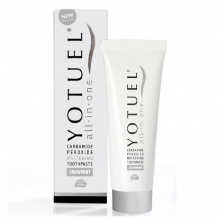 YOTUEL Dentífrico Blanquea Snowmint 75ml está recomendado exclusivamente para uso en adultos. No se aconseja su empleo en niños ni en personas con hipersensibilidad conocida a peróxido de carbamida, flúor o xilitol. Utilícese con precaución en casos de sensibilidad dental previa. Ante cualquier reacción adversa, suspenda el uso y consulte a un dentista o farmacéutico.